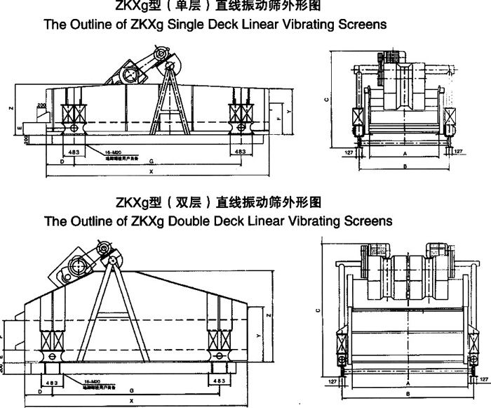 ZKXg型直線振動篩技術性能及安裝尺寸